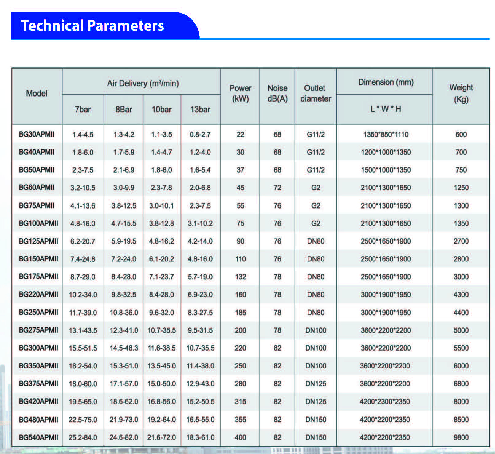 • Two-stage compression air end, increase the efficiency 80% on average.